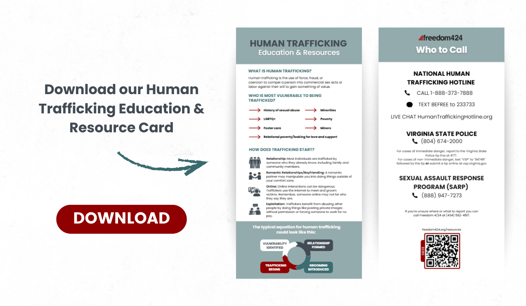 *If you suspect Human Trafficking in Virginia, report it by calling #77 (Virginia State Police)
